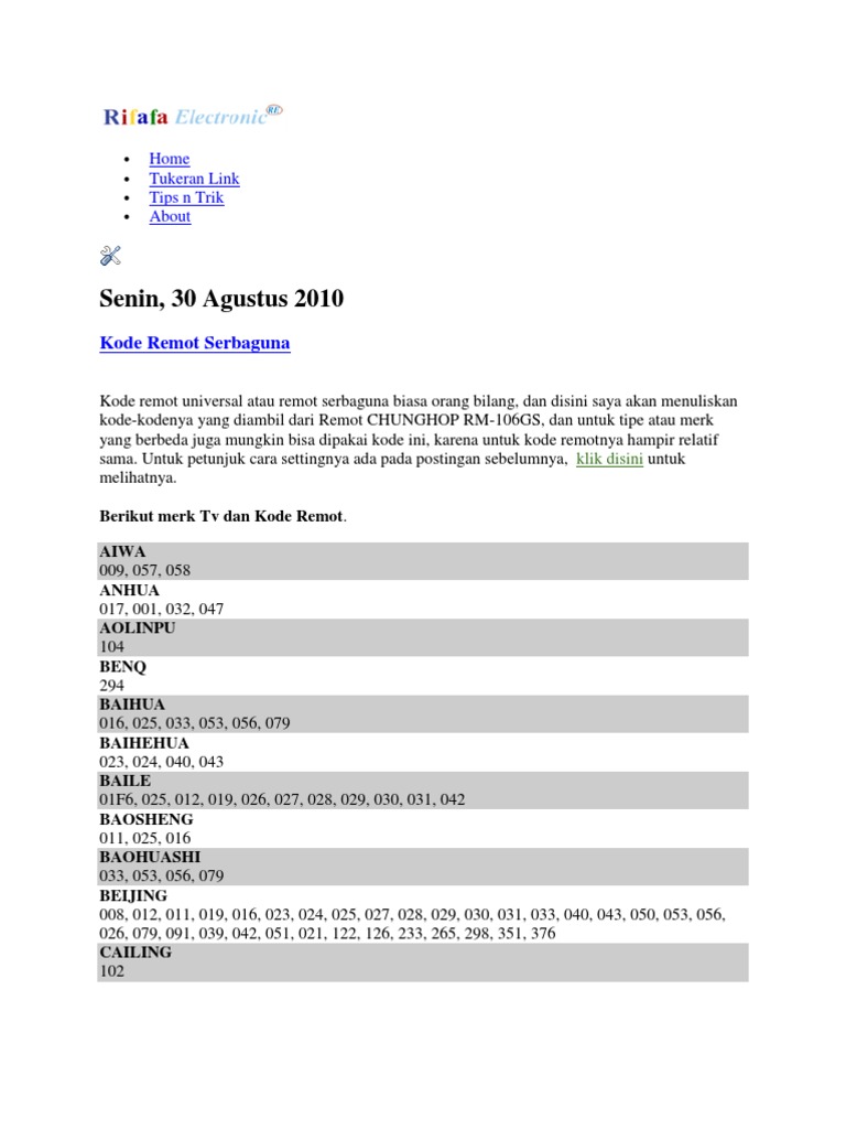 Daftar Kode Remote Tv Universal Untuk Semua Merk Televisi Teknoogi